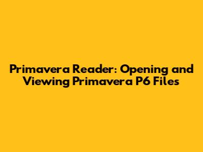 Primavera Reader: Opening And Viewing Primavera P6 Files