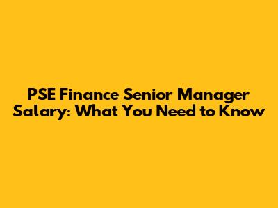 PSE Finance Senior Manager Salary: What You Need To Know