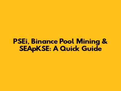 Hey guys! Ever heard of PSEi, Binance Pool Mining, and SEApKSE and wondered what all the fuss is about? Well, buckle up because we're about to dive into each of these topics, breaking them down into bite-sized pieces that even your grandma could understand. Let's get started!