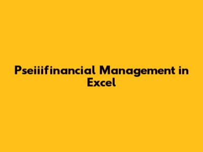 Pseiiifinancial Management In Excel