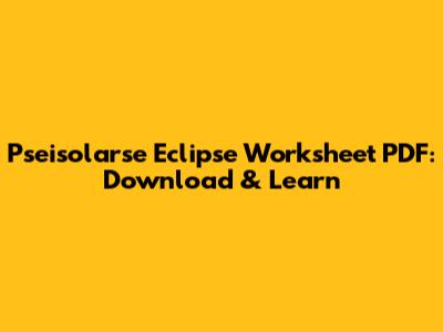 Where to Find Pseisolarse Eclipse Worksheets in PDF Format