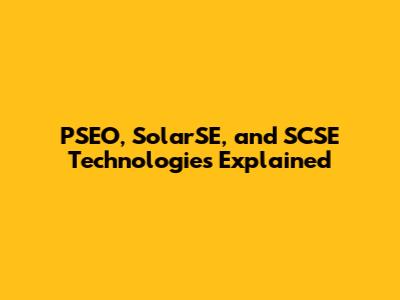 PSEO, SolarSE, And SCSE Technologies Explained