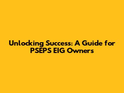 Unlocking Success: A Guide For PSEPS EIG Owners