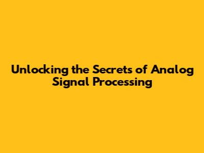 Unlocking The Secrets Of Analog Signal Processing