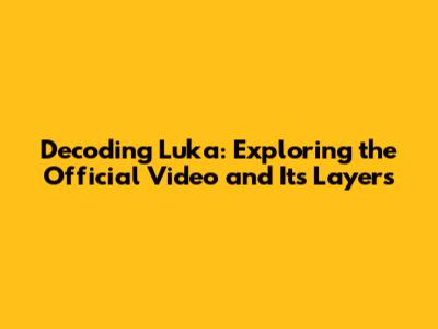 Unveiling 'Luka': A Deep Dive Into The Official Video And Song's Essence