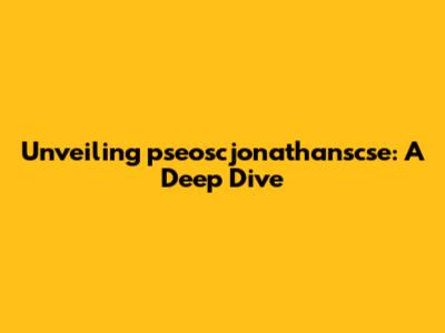 Unveiling Pseoscjonathanscse: A Deep Dive