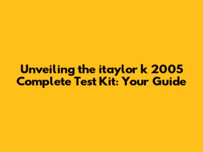 Unveiling The Itaylor K 2005 Complete Test Kit: Your Guide